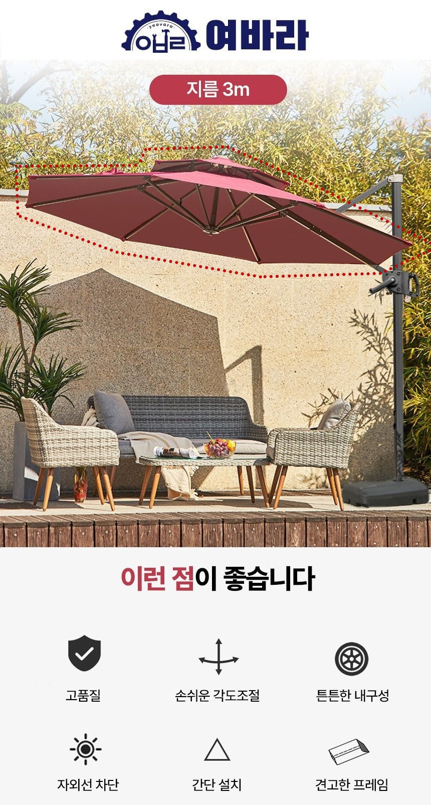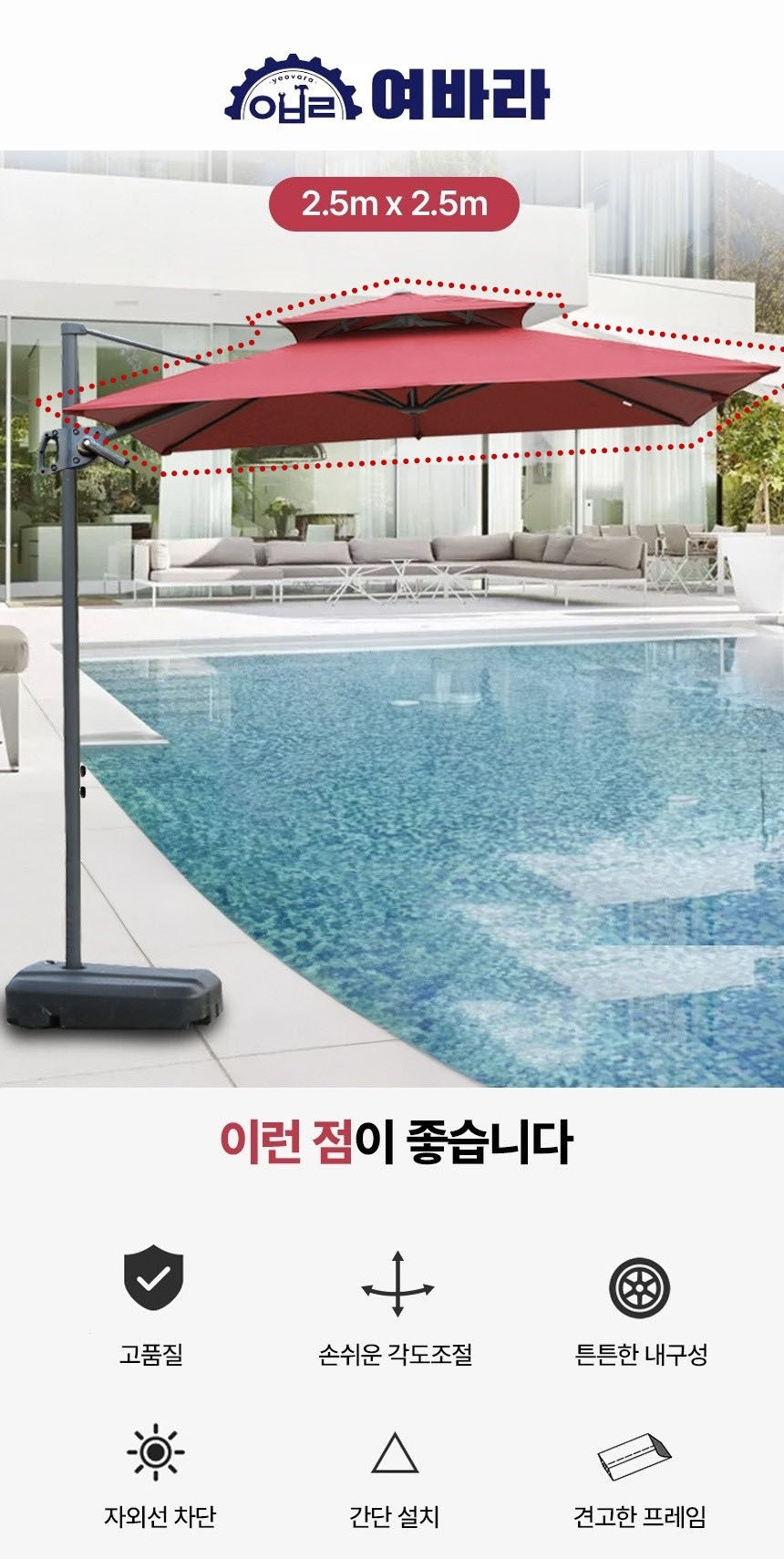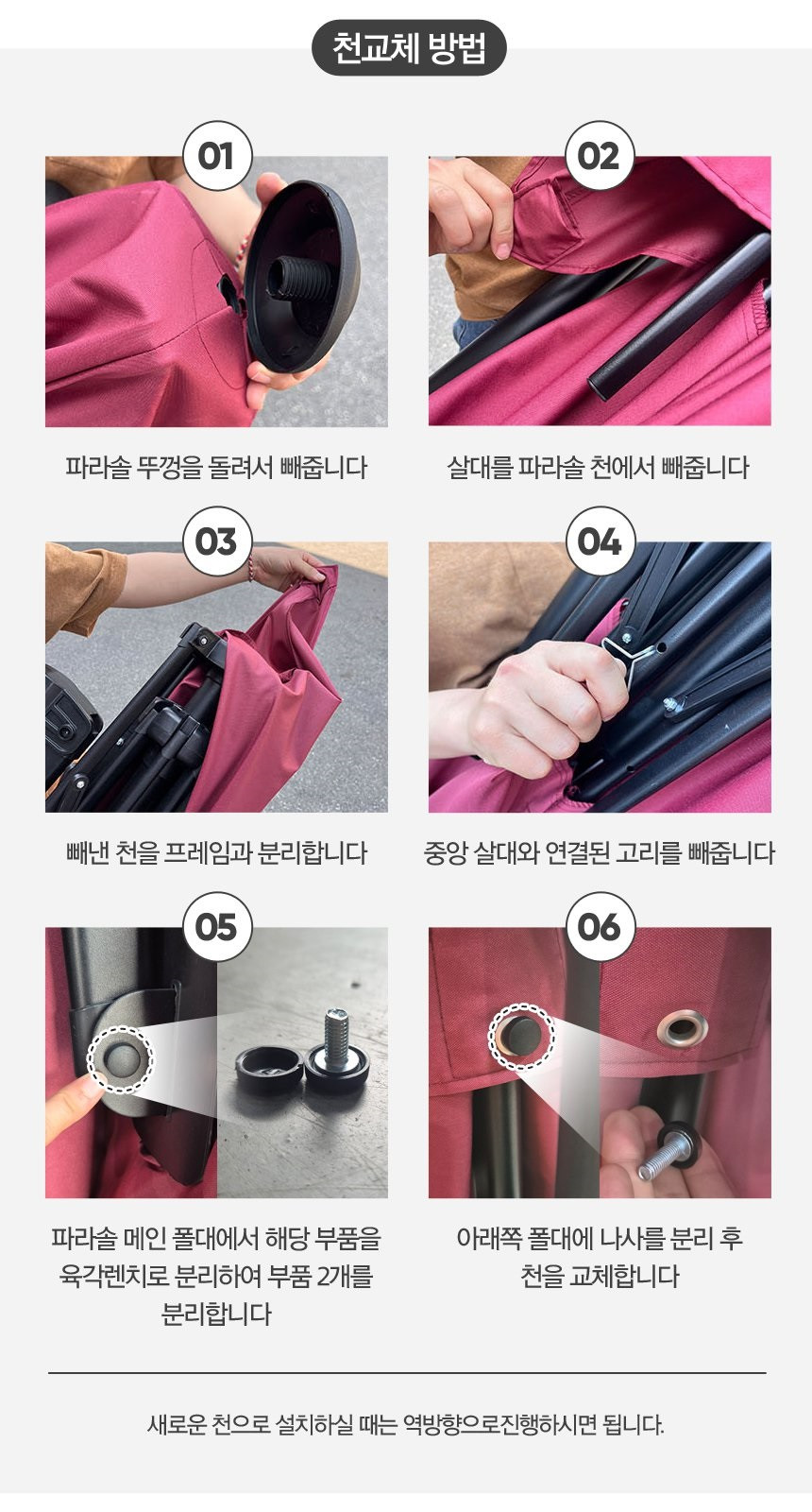 대형파라솔 교체용 셀프 그늘막 레버 천갈이용 간편 사각파라솔